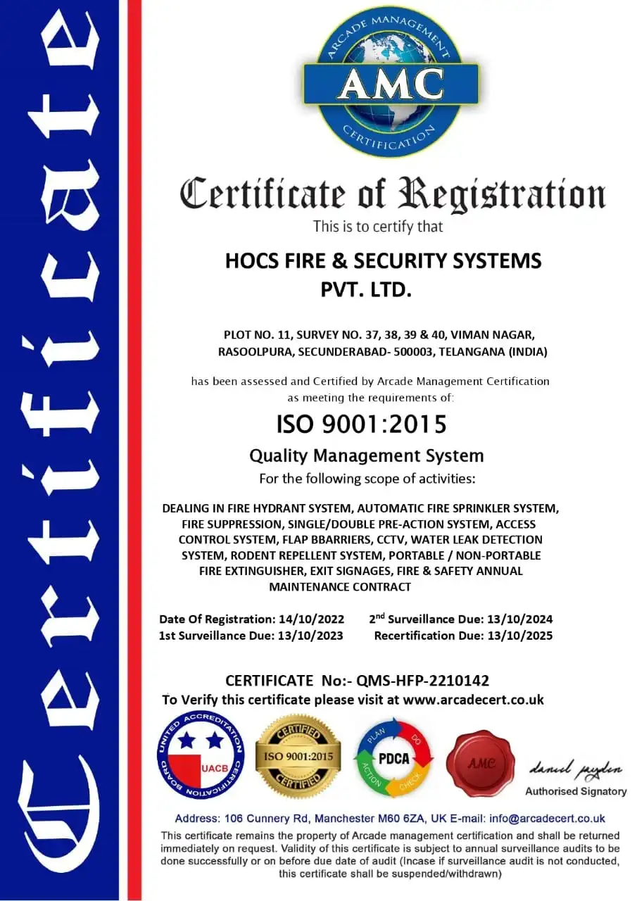HOCS Fire & Security Systems, your one-stop-shop for all your security, safety and building automation needs. Fire and Safety Equipment Manufacturer and Supplier. We are an integrated fire safety & security systems establishment that is committed to providing intelligent and safe solutions to meet the fast-growing needs of modern buildings. Our team of experts is dedicated to helping you protect your assets and people with the latest technologies, from fire alarm systems and CCTV cameras to access control and building automation systems.